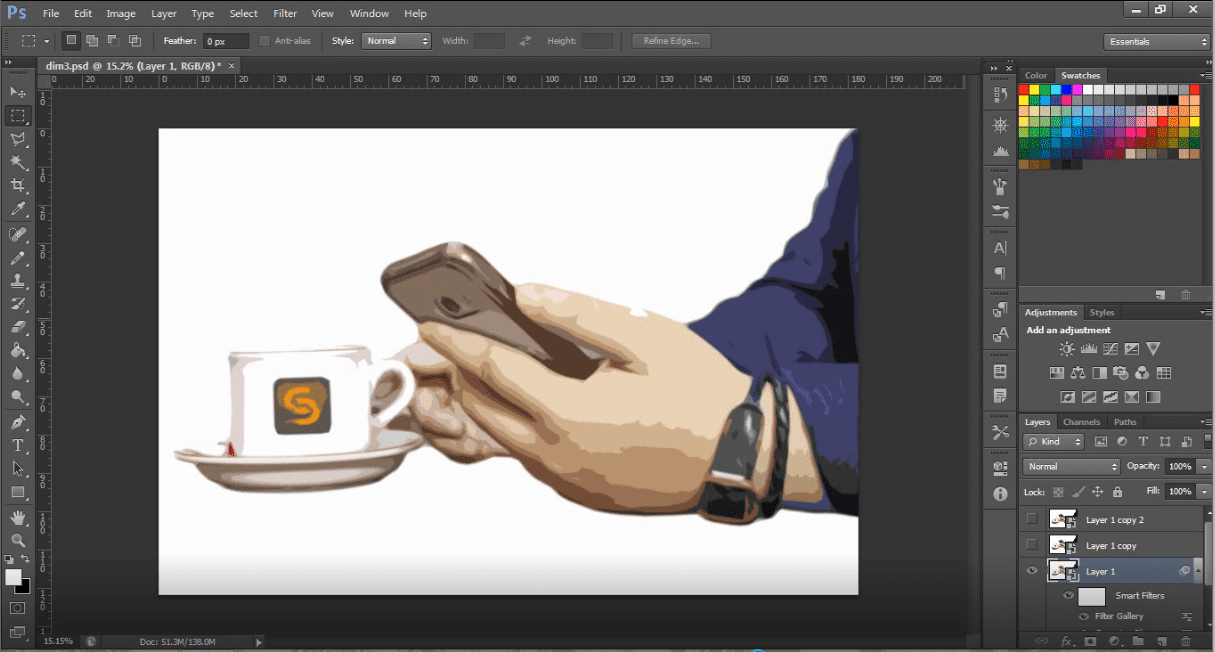 Selanjutnya copy layer barusan sehingga menjadi 3 layer: